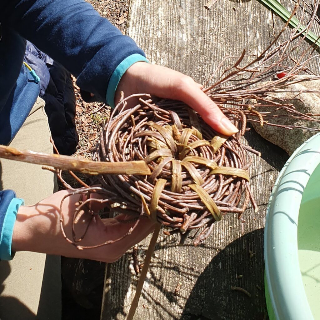 Aujourd'hui tu repartiras avec ta création, on explorera les alentours, en apprenant à reconnaître quelques plantes utiles pour cette technique. Puis tu réaliseras en vannerie aléatoire un objet utile, cette méthode de tressage donne une liberté à la création. Une parenthèse simple, sauvage et créative.